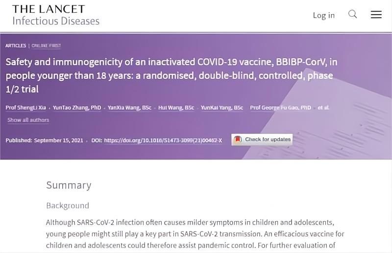 儿童和青少年都是免疫屏障构筑的重点人群。国药集团中国生物北京生物制品研究所开展了一项评价新型冠状病毒灭活疫苗(Vero细胞)在3-17岁健康人群中接种安全性和免疫原性的随机、双盲、安慰剂平行对照Ⅰ/Ⅱ期临床试验,已于9月15日发表在国际医学学术期刊《柳叶刀·传染病》,研究数据表明,疫苗在3-17岁受试者的所有剂量水平下都是安全且耐受性良好的。在接种两剂新冠灭活疫苗后可引发针对新冠病毒的强烈免疫反应。